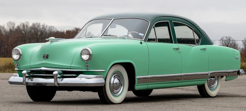 According to Gemini "This unique, lime green vehicle is a heavily customized four-door sedan, and while it has been modified almost beyond recognition, it appears to be based on a 1951 or 1952 Kaiser." Not so sure...