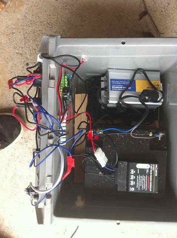 Most of these components are packaged inside a watertight acrylic case that I made after a few times using this all together. Seems to work really well, I usually use it for a couple of weeks over New Years, with music, movies and lighting for nights, never had the battery run out. Although one year I put too much juice through the wiring and fried some parts.