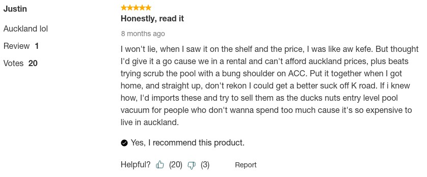 There should be a thread for amusing reviews. This review is for an automatic pool cleaner.
