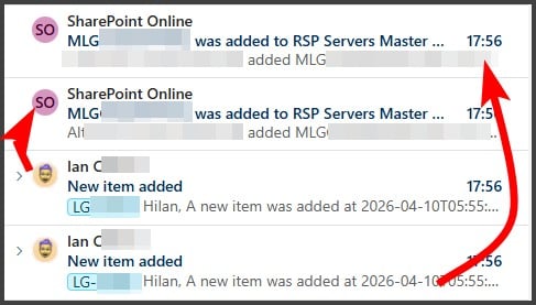 Thx M$ for suggesting an inferior replacement. Not only is the notification from myself instead of from SharePoint, but there also is no relevant detail in the PowerAutomate notification (bottom) compared to the SharePoint notification (top)