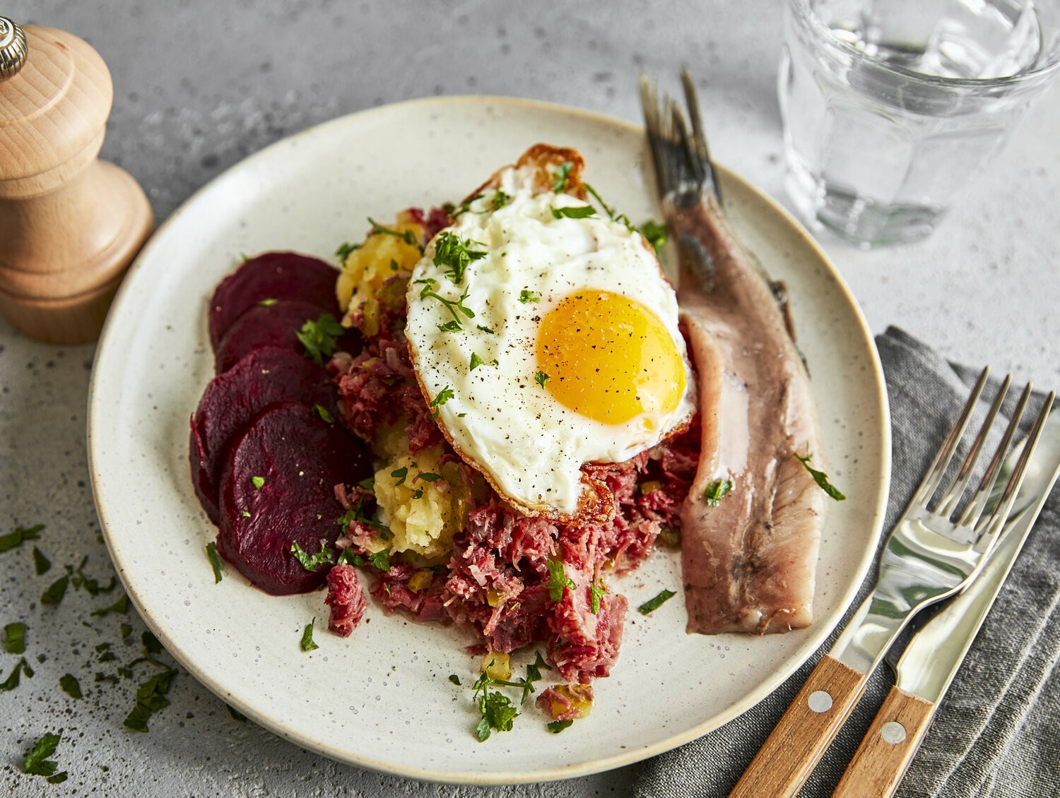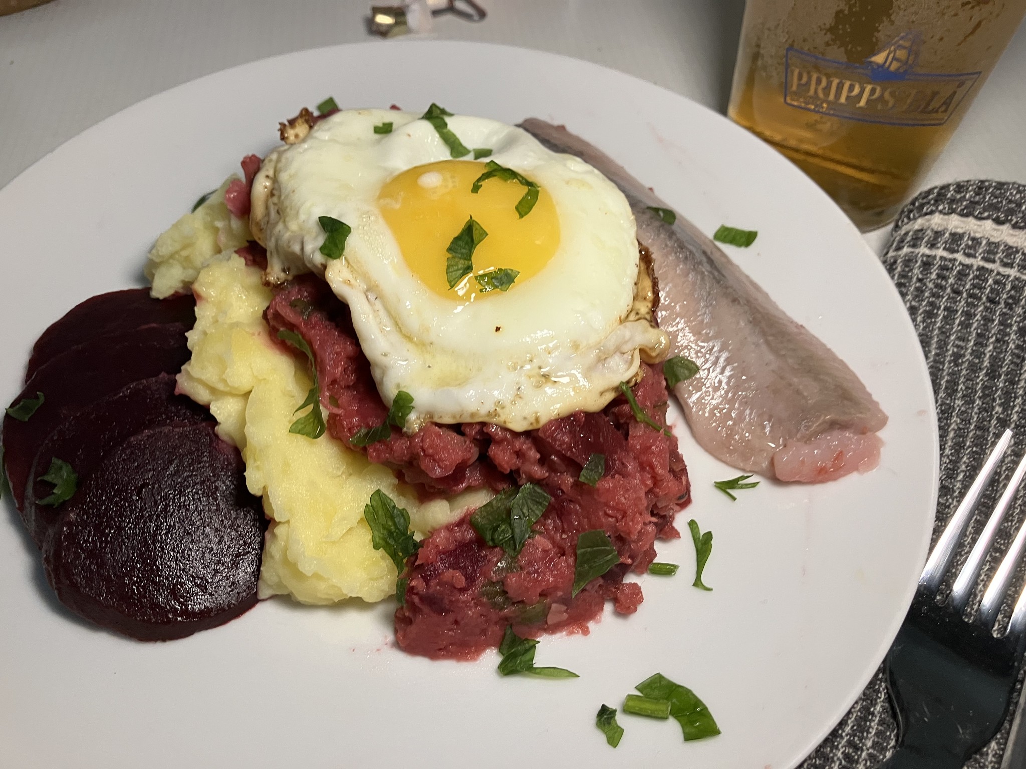 ‘Labskaus’ based on a recipe from a WWII submarine. Before anyone cries foul and calls me a neo-Nazi: https://en.wikipedia.org/wiki/Labskaus