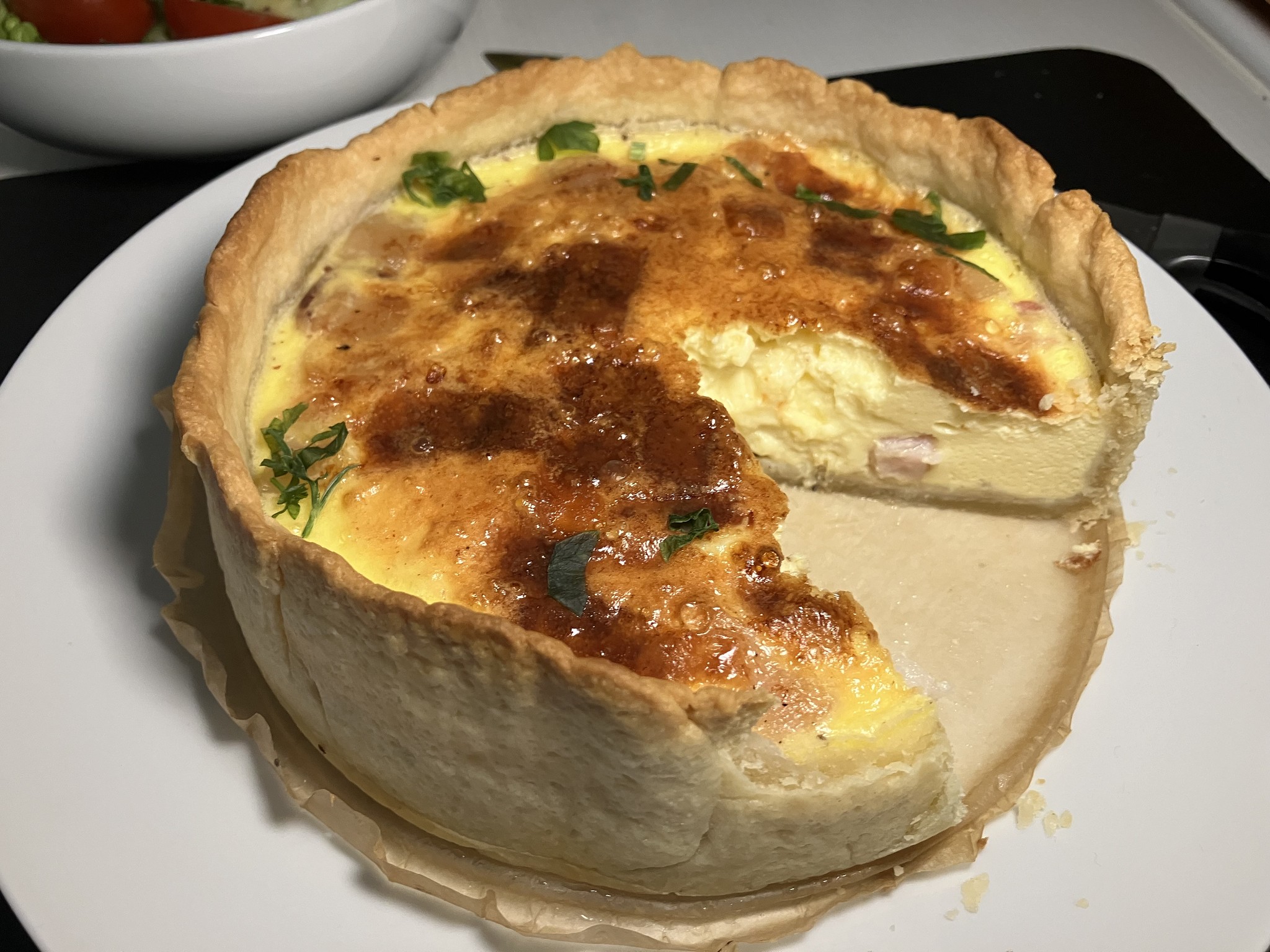 Another Quiche Lorraine, this time with smoked bacon - these tarts are eaten by the team faster than I can bake them, and I'm considering getting two more baking tins of this size so that 3 can be baked at the same time (a quiche of this size is quite substantial and actually intended for 3-4 people).