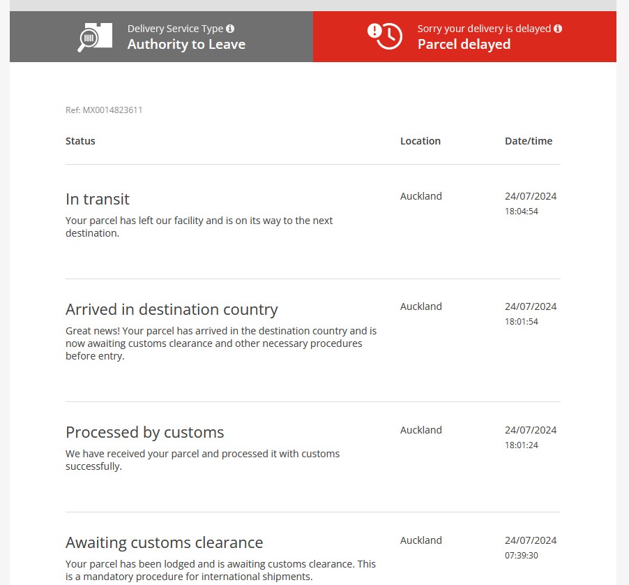 It probably helps I am shipping to a business address, not a Residential, and it's central Auckland.