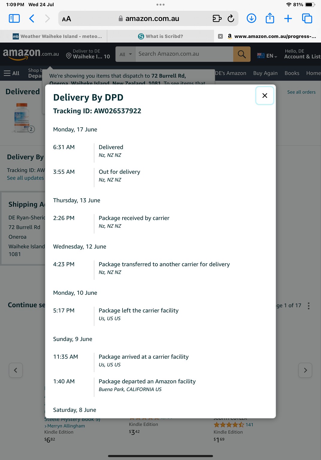 One day more than my Parcel sent from Newmarket to Grey Lynn took to arrive.