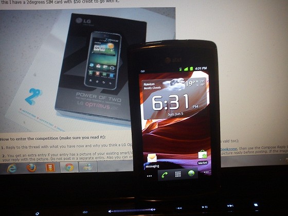 Heres my current Android. An AT&T Samsung Captivate (Galaxy S) running a custom Gingerbread ROM 2.3.3. It runs very very well, but I'm pretty keen to try the LG's dual core goodness!