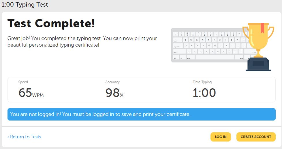 I found I was flying along at the start then started to become very self-conscious of where my fingers where, and started making mistakes. Maybe if I went a little zen I could do better?