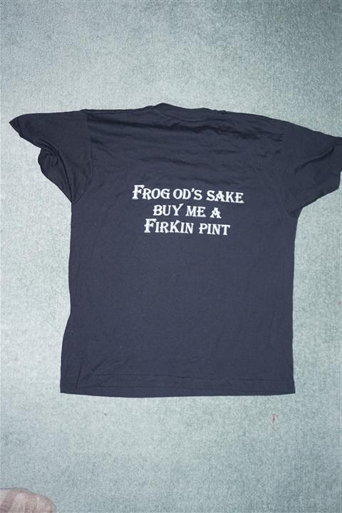 There was (is?) a pub in London, can't remember the name, might have been the Frog & Firkin that sold Tshirts that said "Frog Od's Sake, Buy Me a Firkin Pint".