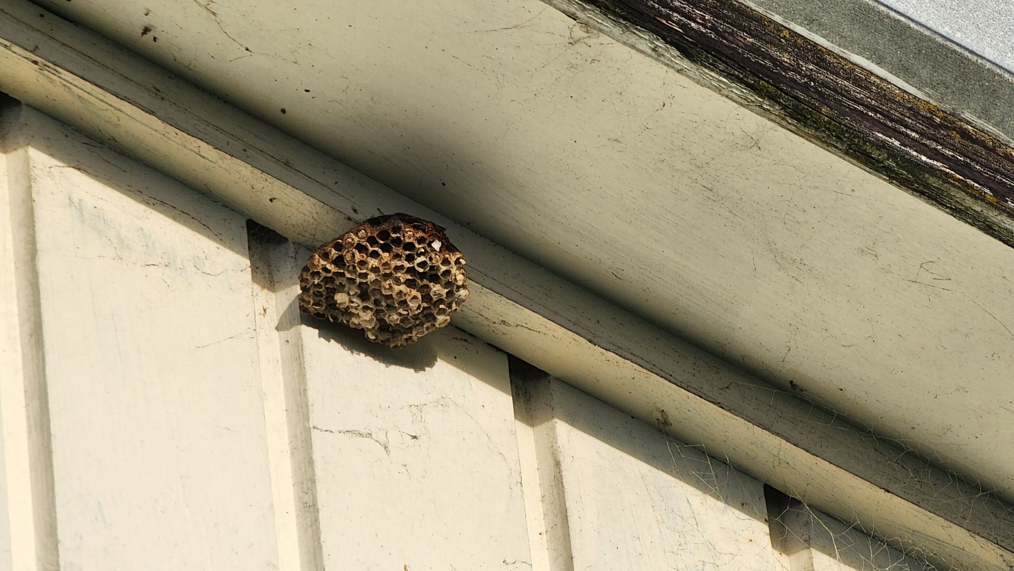Just noticed this start of a bee nest under the eve of my house.
