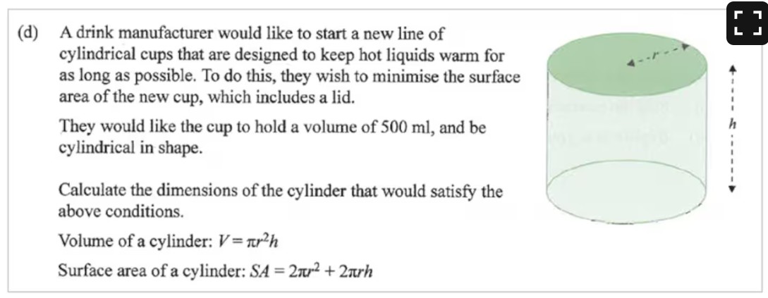 But it's all irrelevant really, because real life experience has taught me that a straight cylinder is the second worst/second best shape for keeping hot liquids warm as long as possible.