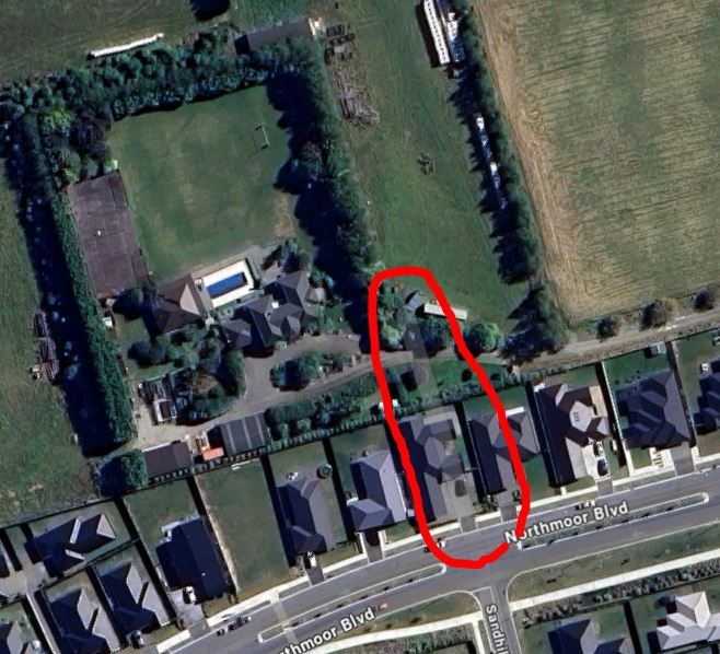 Currently the driveway to the big house runs a very long way down along the back fence of all the properties to the bottom right of the photo, and there are many more out of the picture. When and if they sell their land I don't see any viable access to their house as the roads that look as though they will be connected through their paddocks one day would cut across this driveway.