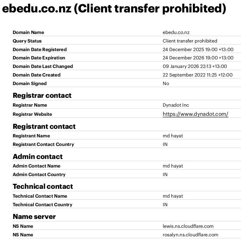 The domain ebedu.co.nz was registered barely three weeks ago and the whois contact details are incomplete, so that fails the sniff test pretty quickly.