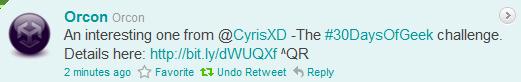 This is a 30 days of Geek Challenge for fellow geeks/bloggers, have been getting great feedback about it and since posted last night already have a few geeks keen to start asap.