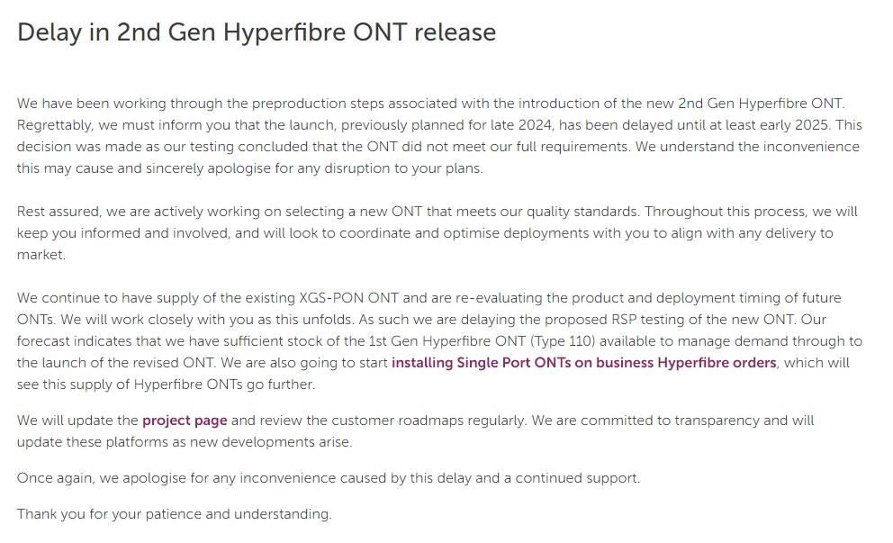 For those waiting for the second generation Hyperfibre ONT seems the launch is delayed until 2025.