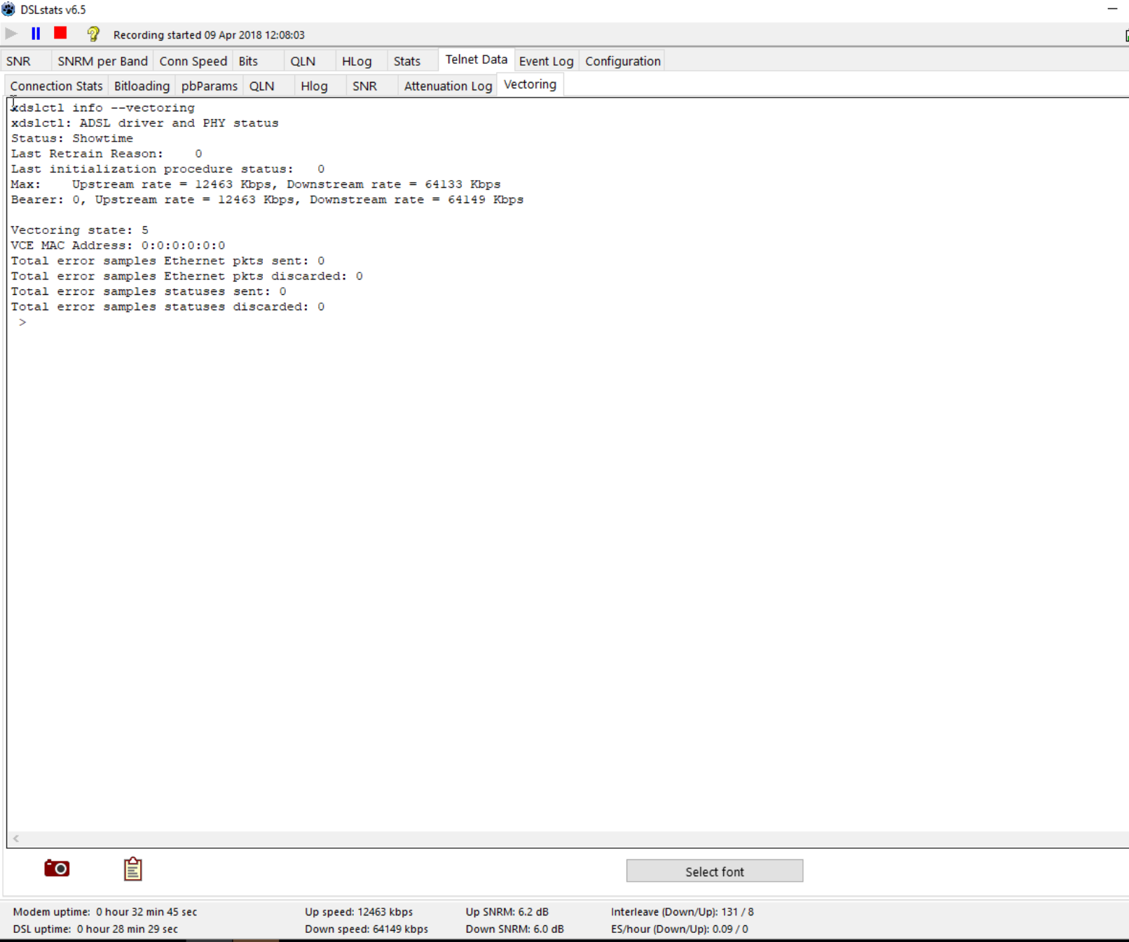 Statistically, error rates have dropped but that's once again hard to say if related to snr changes, bin allocation, remade connection etc.