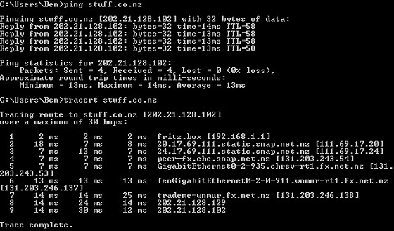 (EDIT: Were you testing on wifi or something? Just wondering about the 2ms to your fritzbox and the variable first hop latency)