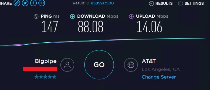 I have no issue with getting over 100/100 to LA on my 2degress connection.