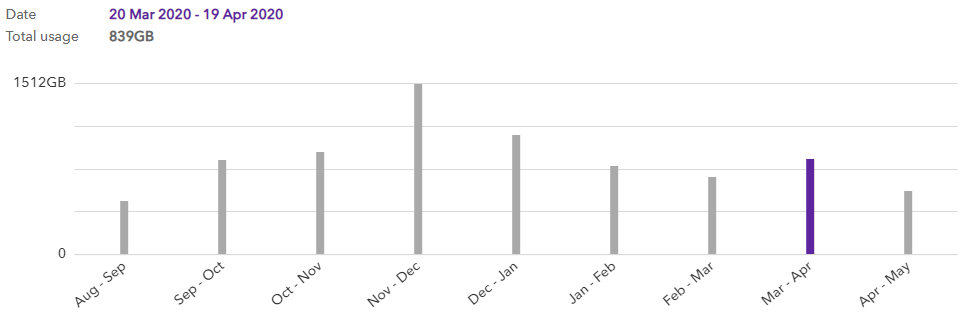 March and April, roughly 1.5TB in our household. About 50% up on normal.