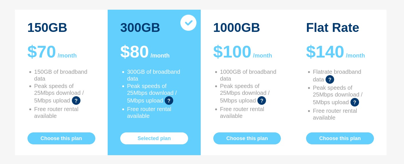 Here are the wireless plans from one of the larger ISP's in the area: