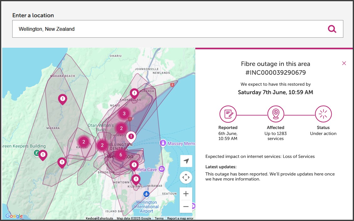 Kinda - doesn't cover the extent of the outage. I'm also down in Paraparaumu but that makes sense seeing it's all going via Wellington.