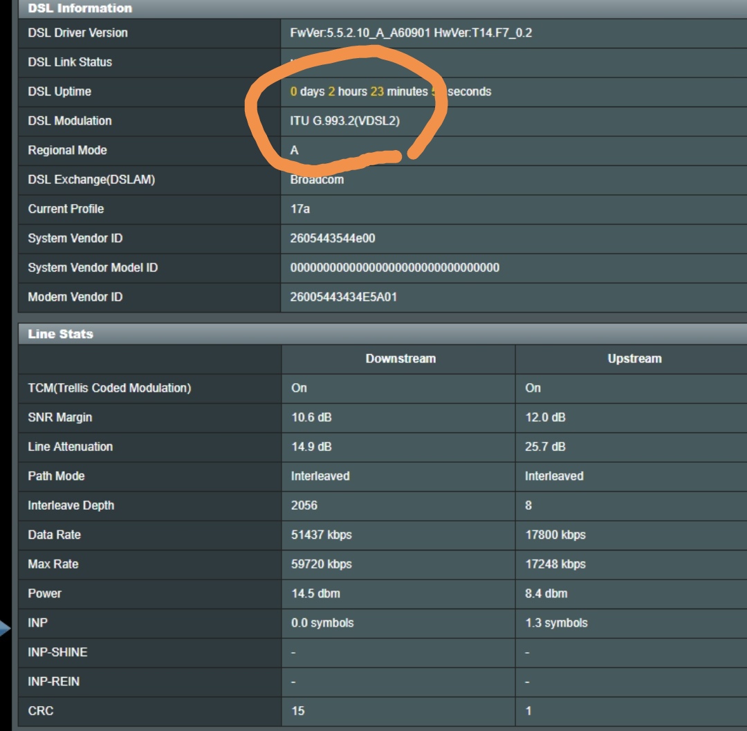 Our modem is an ASUS DSL-AC56U. Not certain where I check to see if vectoring is turned on.