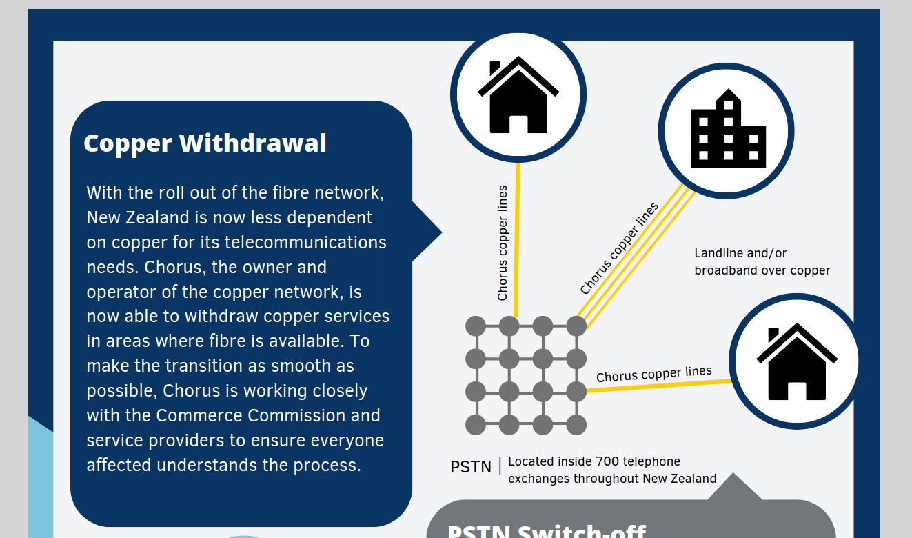 "Chorus is retiring its copper network – which means we are phasing out the availability of broadband and phone services that use the copper network. We started with areas where fibre is available in 2021 and are intending to retire the entire network by 2030." (emphasis added)