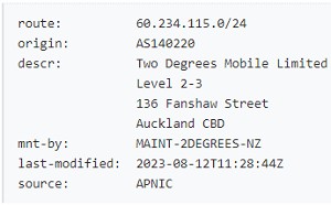 Seems to have been some movement last night 23:28 they updated routing registry database details