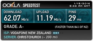 it's curious that your download speed through your isp isn't a little higher though, although you are seemingly a distance from auckland, so maybe when the ping goes down your speeds will go up a little. (i'd estimate more like 94 megabit for including overheads)
