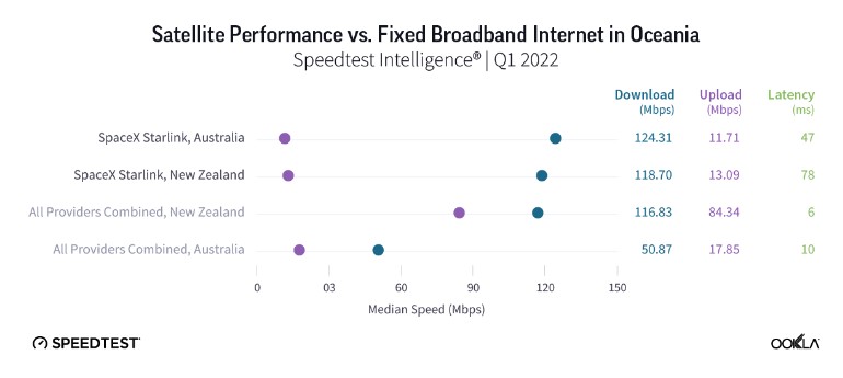Median NZ Starlink speeds slightly faster than "all providers combined".