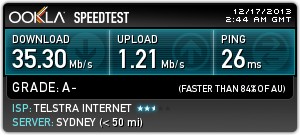 Telstra also sells HFC based inter web that I might check tomorrow, online ordering doesn't work as I don't have Australian passport or ID card.