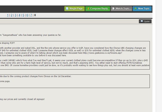 And a question to Unlimited, since you only offer clothed DSL with phone service with another provider and naked DSL, and the the only phone service you offer is VoIP, have you considered how the Chorus UBS charging changes are going to affect you? It seems unlikely you're going to be able to maintain a price of $49 for unlimited clothed VDSL (well I presume these changes effect VSDL as well) or $39 for unlimited clothed ADSL when the changes come in less than a month, but I can't see any mention of the likely future price increase anywhere. I presume you're aware of what I'm talking about which was been discussed here http://www.geekzone.co.nz/forums.asp?forumid=49&topicid=154081 and elsewhere and more importantly, the details must have been something available to you before it was discussed here.