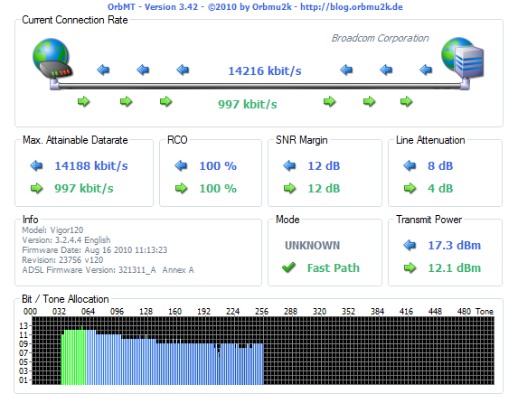 sbiddle: It doesn't look like either graph from the Vigor120 corectly shows the 512 tones for ADSL2+, just 256 which is used for ADSL.