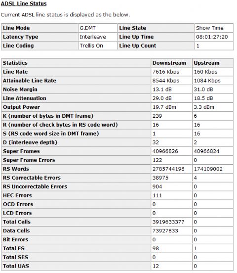 And here is the stats from the Modem: