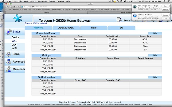 Just had a new connection put in around a week ago and have been unable to connect to the internet. Going around in circles with Telecom NZ and Chourus. The modern (HUAWEI HG630B I think) is showing a solid DSL light but seems to be going through a continuous 'Connecting' 'Disconnected' Cycle and getting no PPP. Telecom says it can't see any issues. Chourus guys been out and apparently checked the cabinet and come to the end point and checked that to.. though only to see that the DSL light is solid and to call up Christchurch and get someone to drop the port and make sure the DSL port went out. The WLAN VDSL tab is showing 37 down and 10 up and seems OK.. but no internet light or connection. Telecom have no log of any failed connection attempts apparantly.