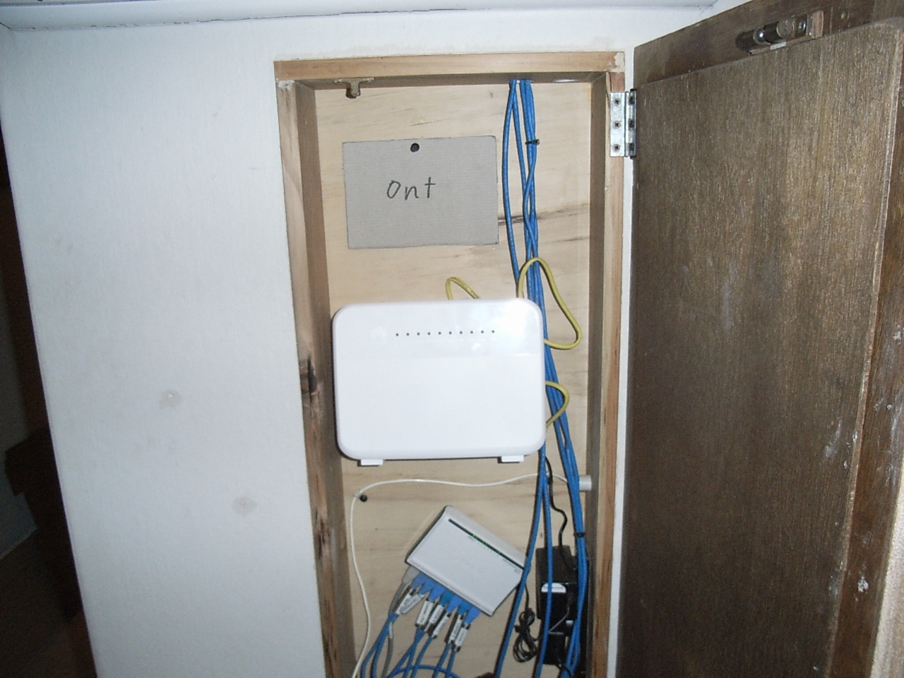 I've moved things around in the cabinet to make room for the ONT and installed the ISP supplied residential gateway.