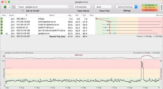 5 tengigabitethernet0-2-0-911.wnmur-rt1.fx.net.nz (131.203.246.137) 102.900 ms 65.573 ms 201.133 ms