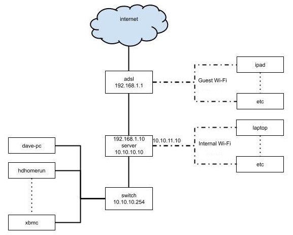 My wired network is a separate subnet connected to the router via a Linux gateway. The router subnet is 192.168.1.0/24 and the wired 10.10.10.0/24. The Linux gateway has a NIC on each network (192.168.1.10 and 10.10.10.10). Wireless devices connected to the router can access the internet, as can wired devices when I connect them directly to the router. The Linux gateway can access the internet itself, but other machines connected via the Linux gateway cannot.