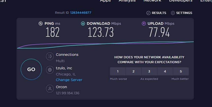 And for speedtest could you use "tzulo, inc" in Chicago, IL on speedtest.net