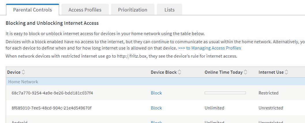 Using the 2D supplied Fritzbox 7590 and implemented its parental options.... Im trying to lock down one of the kids Apple iPhones from being used overnight etc.