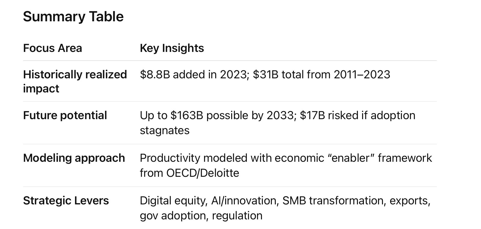 • The report uses an advanced economic modeling framework, blending Deloitte Access Economics and OECD methodologies, to assess how fibre enables digital adoption and boosts productivity. This allows attribution of growth directly to the fibre network.