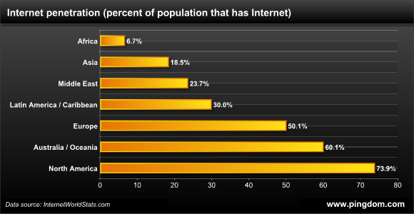 The stat I'm most surprised about that only 50% of Europe has the internet, I thought it would be on par with North America.