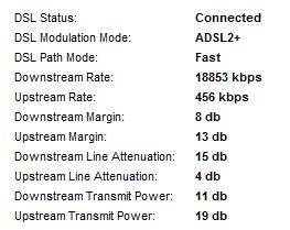 Now when previously on standard ADSL i have had fairly normal stats (no pic sorry), much higher that what it is now. Tried rebooting, changing to ADSL2+ syncing rather than "Multimode" etc, no luck.