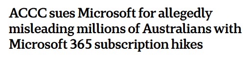 The Australian Competition and Consumer Commission (ACCC) has sued the tech giant for allegedly misleading about 2.7 million Australians over its Microsoft 365 subscriptions.