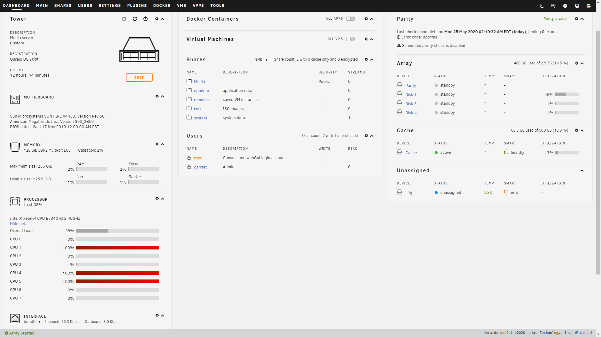 Unraid: unRAID server Plus, version 6.8.0