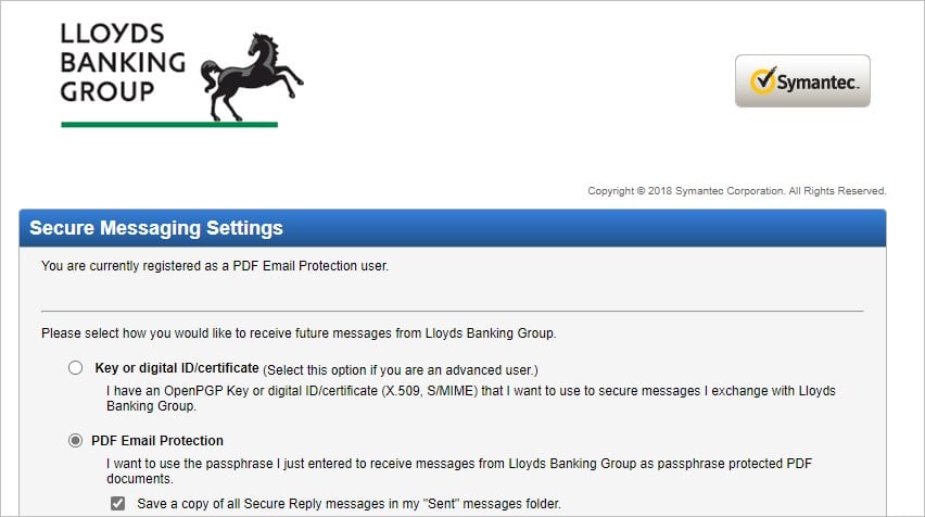 As part of determining my options, they are using Lloyds Banking Group to send and receive secure messages to/from the UK Company.