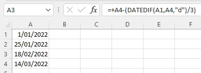 What would the formula be to find the dates to fill cells A2 & A3?