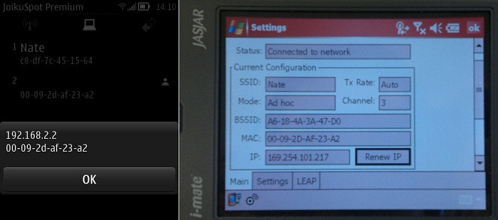 Does anyone know how I can set the IP address for this device. The access (JoikuSpot on Symbian, Nokia N8) think the IP address has been assigned by WM5 (JasJar with Vodafone ROM) does not have the correct IP assigned.