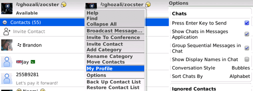 * Avatars - Users can choose a picture from the BlackBerry Smartphone gallery and save it as their personal avatar, which will be seen by their contacts. They can also view other avatars in the contact list and zoom in on the avatars of contacts participating in a conversation by selecting “View participants.”
