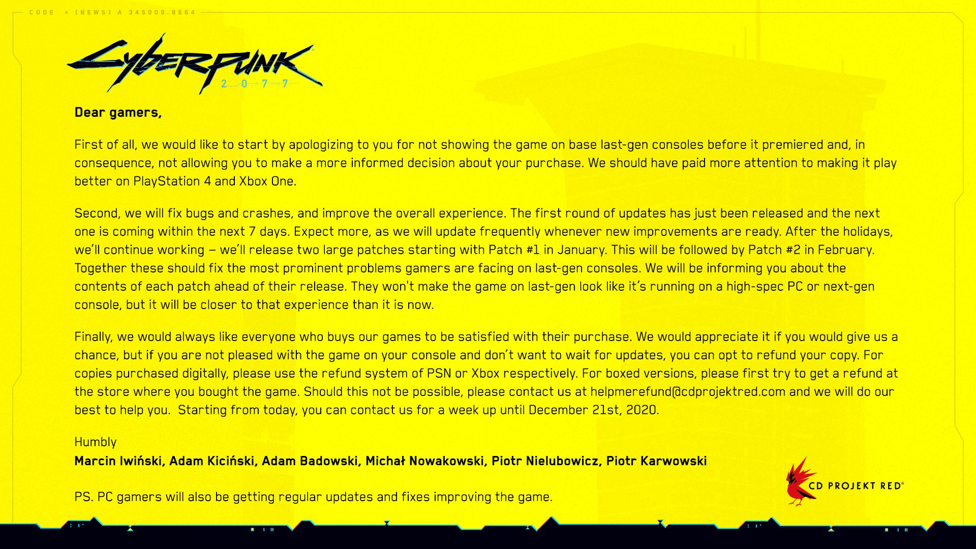 PSA: Don't buy Cyberpunk 2077 if you're not on next gen or PC. This'll take their reputation a long time to recover from.