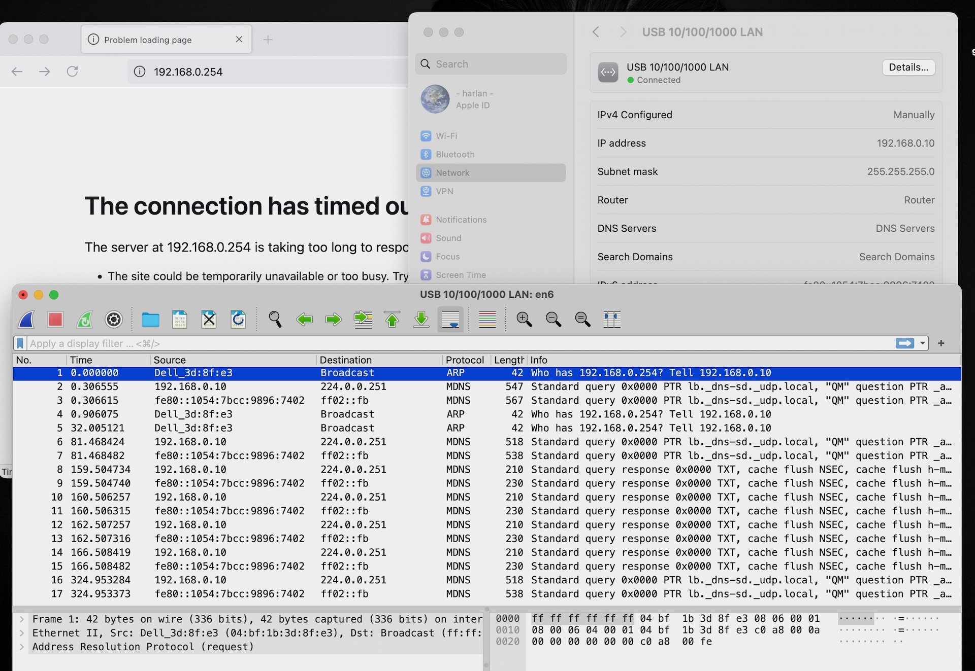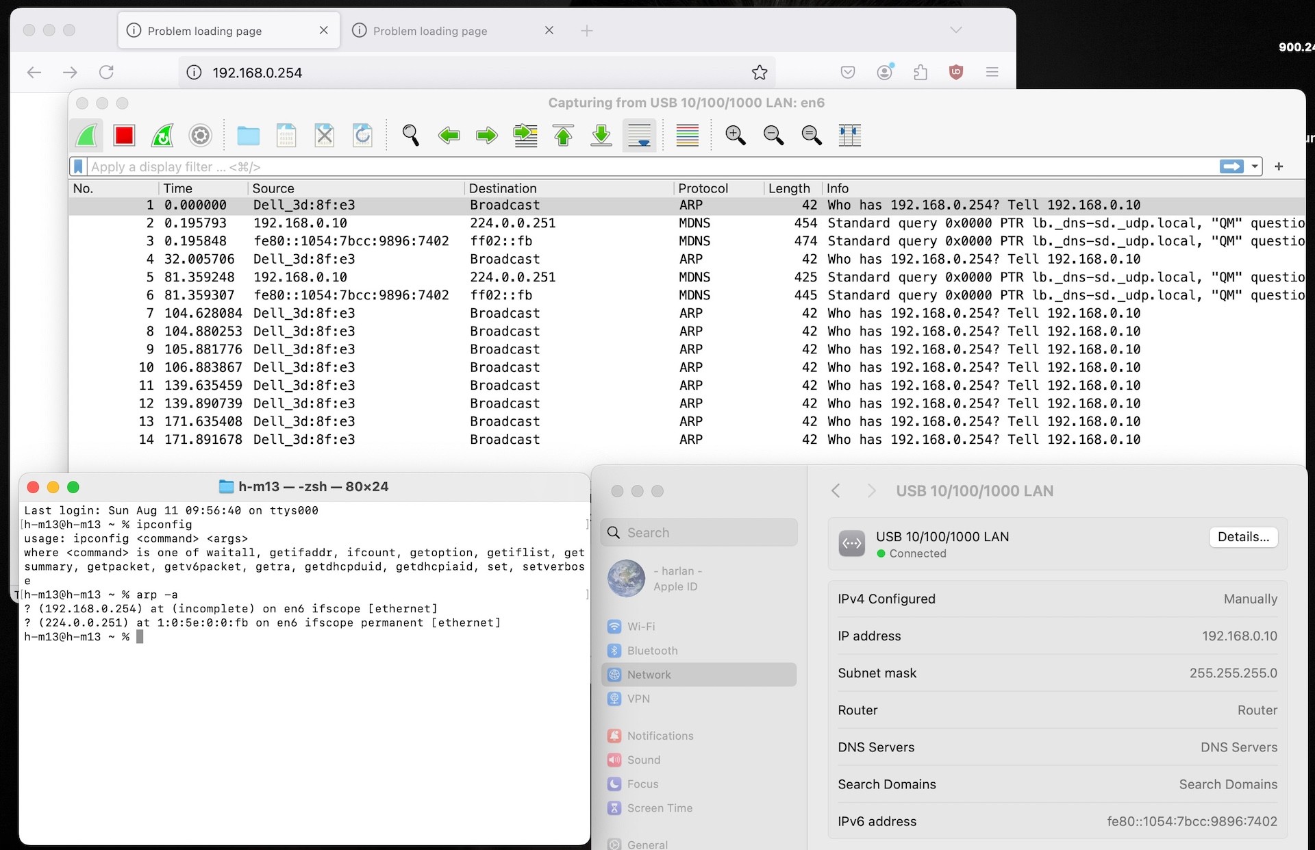 ? (192.168.0.254) at (incomplete) on en6 ifscope [ethernet]