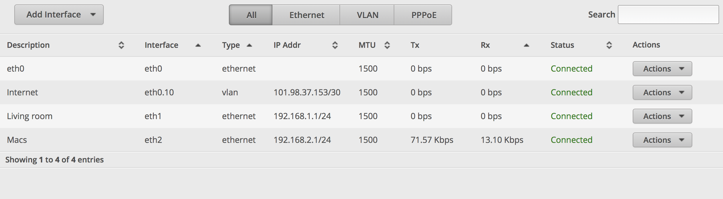 After upgraded to the latest firmware, V1.10.3, I tried to connect through both eth1 and eth2 ports (Fibre comes into eth0). It works through eth1 but not eth2. Configuration is as the pic below.